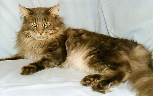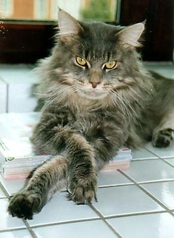 Catsanova, wir rufen ihn Catsi, kam im Juni 1996 aus Texas zu uns. Catsi ist ein wundervoller Kater, er ist groß und stämmig. So groß er ist, so sanft ist er auch. Er hat ein sehr liebenswürdiges Wesen und möchte am liebsten den ganzen Tag auf dem Schoß liegen und sich kraulen lassen. Mit seinen Damen ist er ganz Casanova. Sein liebes Wesen, Aussehen und seine Größe gibt er auch an seine Babys weiter. Er vererbt auch Einfarbigkeit. Er hat uns sehr schöne und liebe Babys beschert, wie auch Born to be Wild. Wir lieben Catsi sehr und hoffen, daß er noch lange bei uns ist. Ramona, many many thanks for this wonderful male !
