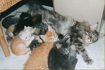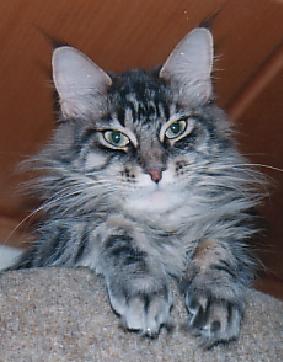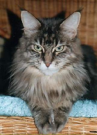 Betty war die typvollste und schönste Maine Coon Katze, die wir je gesehen haben, und sind stolz, daß wir sie unser Eigen nennen durften. Sie war eine sehr liebe, verschmuste und verspielte Katze. Sie war eine ganz tolle Mutter, sie bewachte ihre Kinder wie eine Löwin. Andere Babys durften auch bei ihr trinken, sie machte da keinen Unterschied, sie liebte alle Babys. Betty war eine wirkliche Schönheit unter den Maine Coons und wir vermissen sie unbeschreiblich. Sie war eine Bereicherung für die Katzenwelt und für uns. Sie kam damals zusammen mit Goldi zusammen in einem Kennel aus den USA zu uns. Beide waren immer wie Schwestern, obwohl sie keine waren. Wir hoffen es geht ihnen gut im Katzenhimmel. Wir vermissen euch so sehr, wir lieben euch!